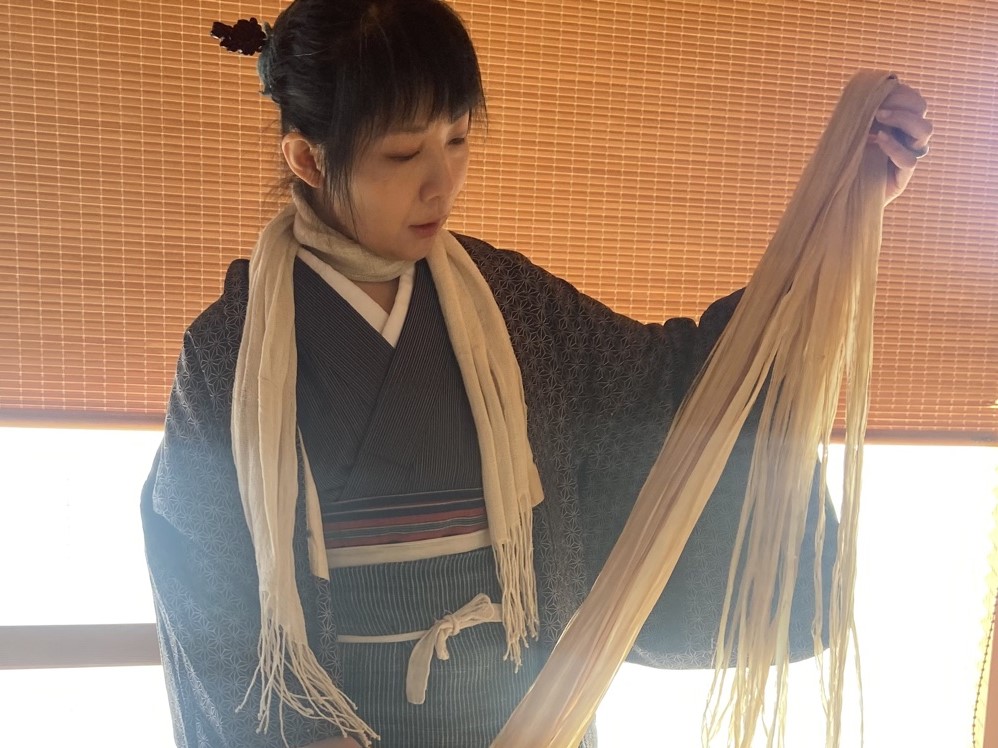 「よりひめ®」自らも伝統技術の担い手として、麻糸績み技能者「よりひめ」の技術を習得。